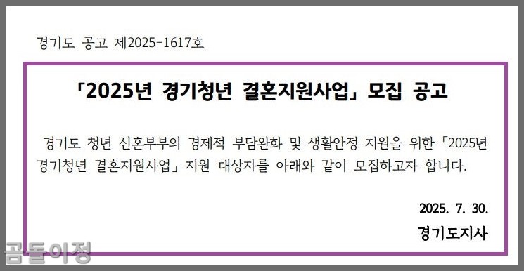 2025년 진행된 경기청년 결혼지원사업은 부부당 100만 원을 지원하는 제도였습니다.