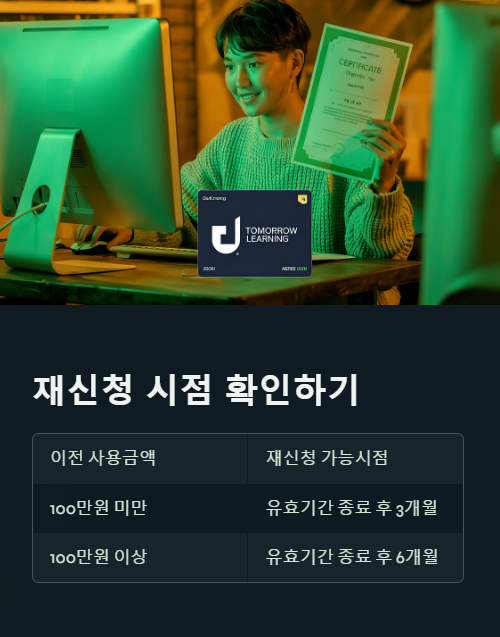 → 유효기간 확인하고 재신청 가능 시점 체크하세요. - 정부지원금 소진 후에도 더 배우고 싶은 경우